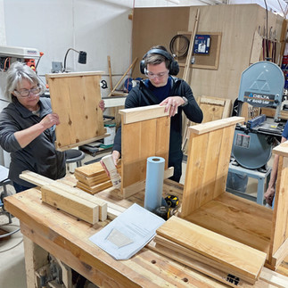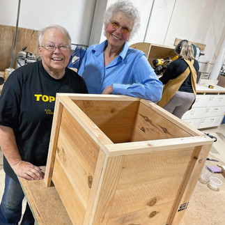 Tools used include the miter saw, table saw, and brad nailer. All materials provided. You will apply a finish of your choice on your own; we will offer guidance on proper finishes for outdoor protection.